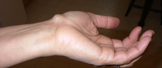 The middle finger of the hand is partly innervated by the median and partly by the ulnar and radial nerves - its numbness is accompanied by a feeling of “twisting” of the entire palm, similar to calf cramps. Sensory disturbances also appear in this finger when carpal tunnel syndrome occurs, when the transverse ligament presses the nerve too much against the bones of the wrist. Loss of sensitivity is noticeable more often at night, it becomes difficult to hold objects, and shaking the hand stops the discomfort. It seems to a person that the brush has become heavier and thicker. Sometimes swelling does occur.