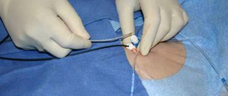- Введение анестезии, вставка люмбального дренажа, удаление спинномозговой жидкости.