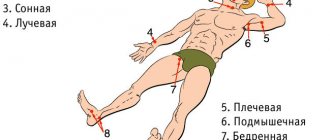 Рисунок 1 — Стандартные точки локации магистральных артерий нижних конечностей